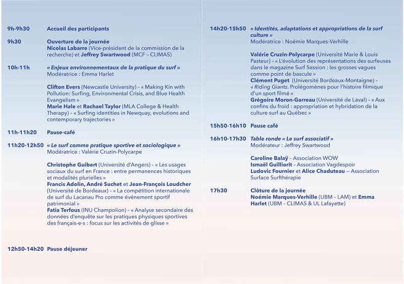 14h20-15h50 : "Identités, adaptations et appropriations de la surf culture", Modératrice : Noémie Marques-Verhille